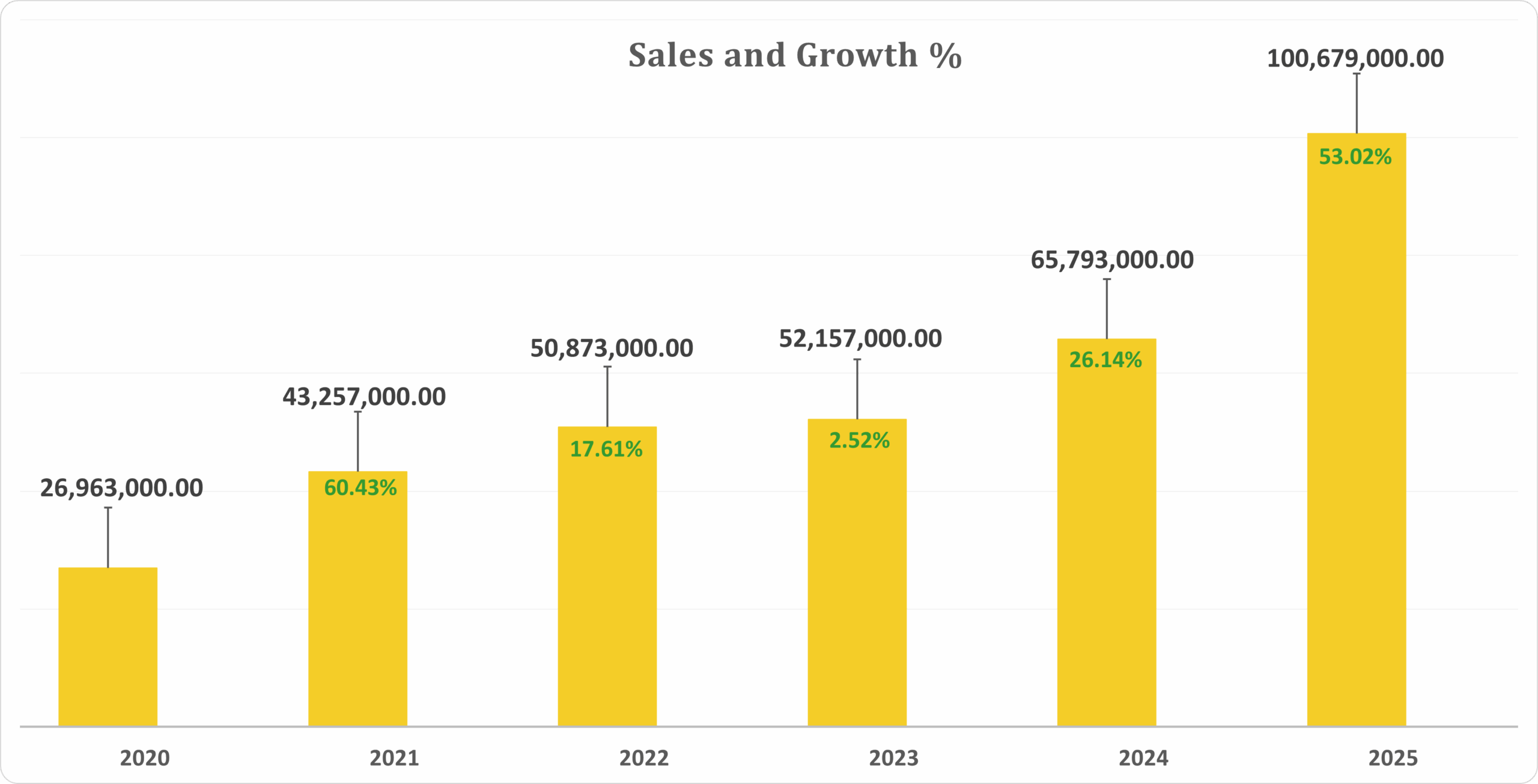 Në vitin 2025, GNTC Group realizoi shitje totale prej 108,656,000 €, nga të cilat 100,679,000 € u gjeneruan përmes Gorenje Department Store, ndërsa pjesa e mbetur e të ardhurave u kontribuua nga FaZe Motors, GNTC Invest, Shpedicioni dhe PIB.